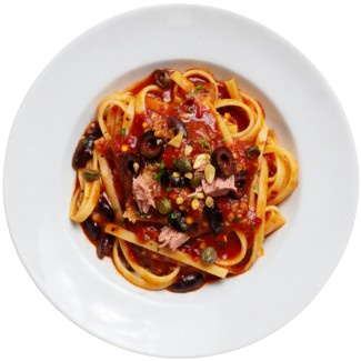 Des recettes fixes, travaillées, avec ce qu’il faut de générosité : bolognaise, puttanesca, crème poulet-champignons, crevettes, fruits de mer…